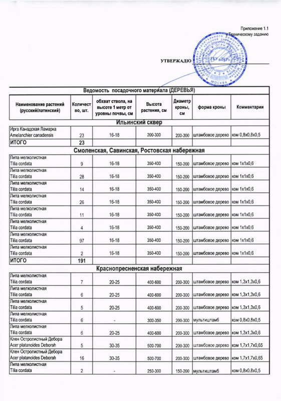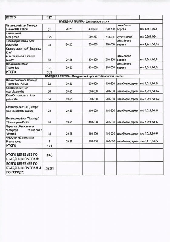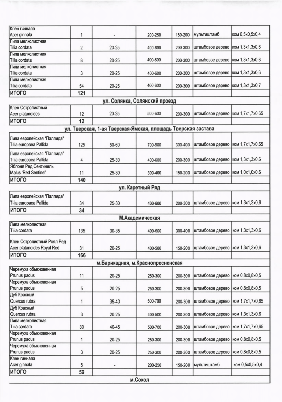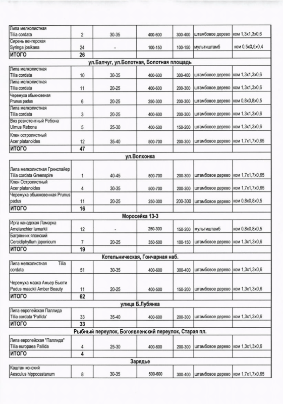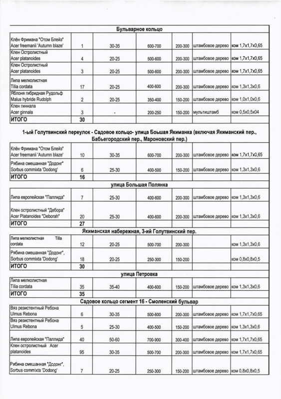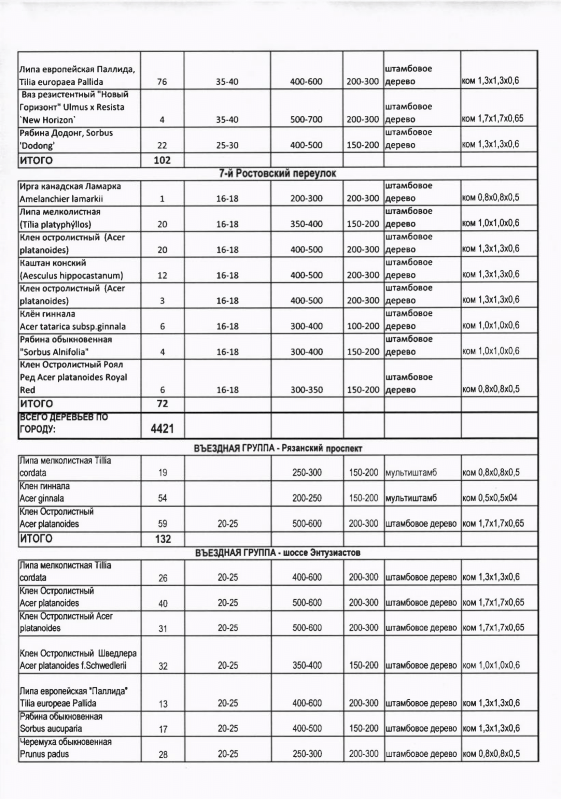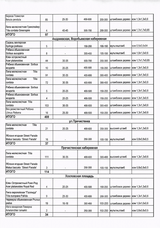 Вот адресный перечень с указанием места посадки, вида и характеристик сажаемых деревьев. Подчеркну – пока речь только про деревья, кусты будут сажать весной.