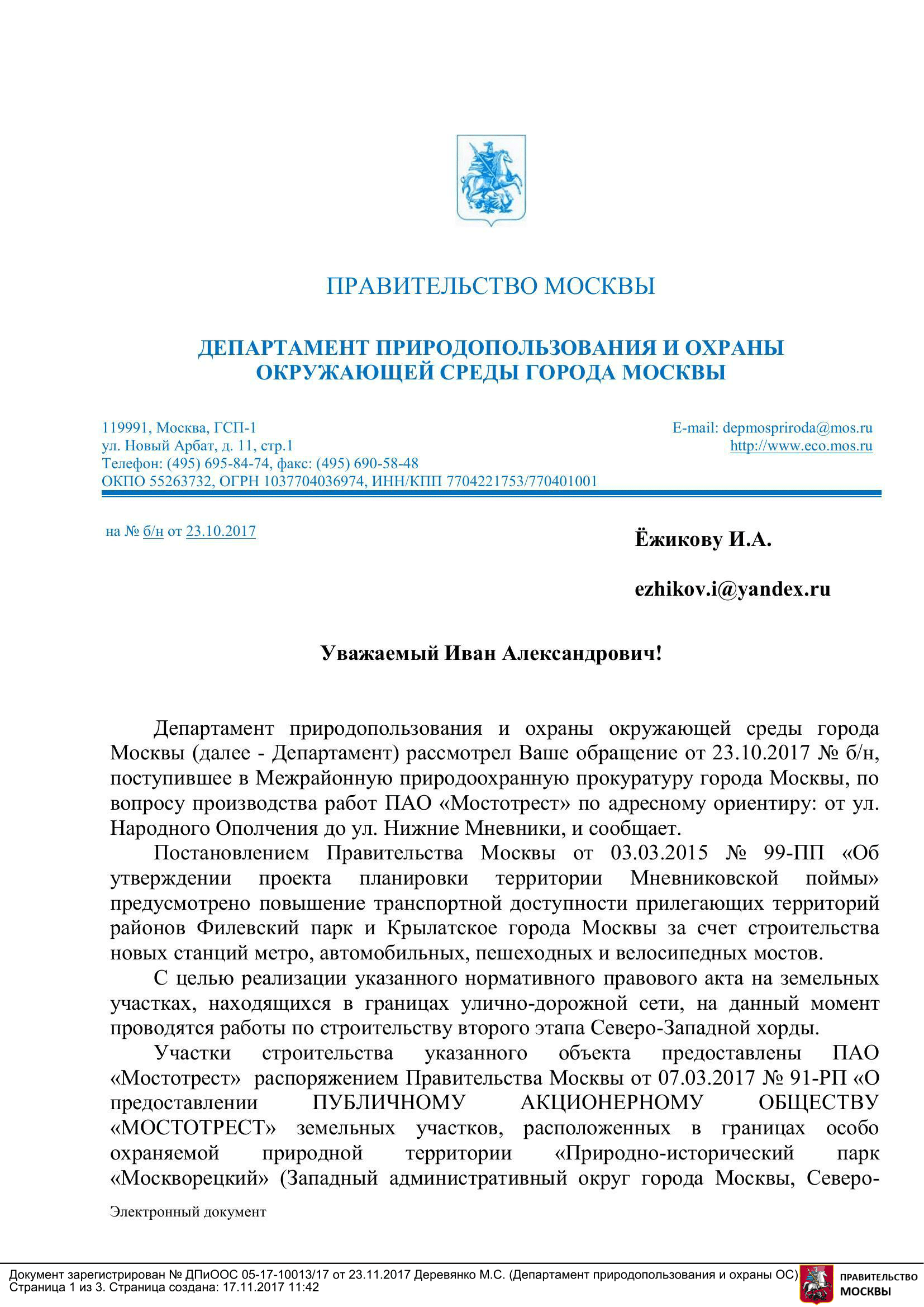 Массовую рубку деревьев на Особо-охраняемой природной территории “Природно-исторический парк Москворецкий” санкционировал Департамент природопользования и охраны окружающей среды.