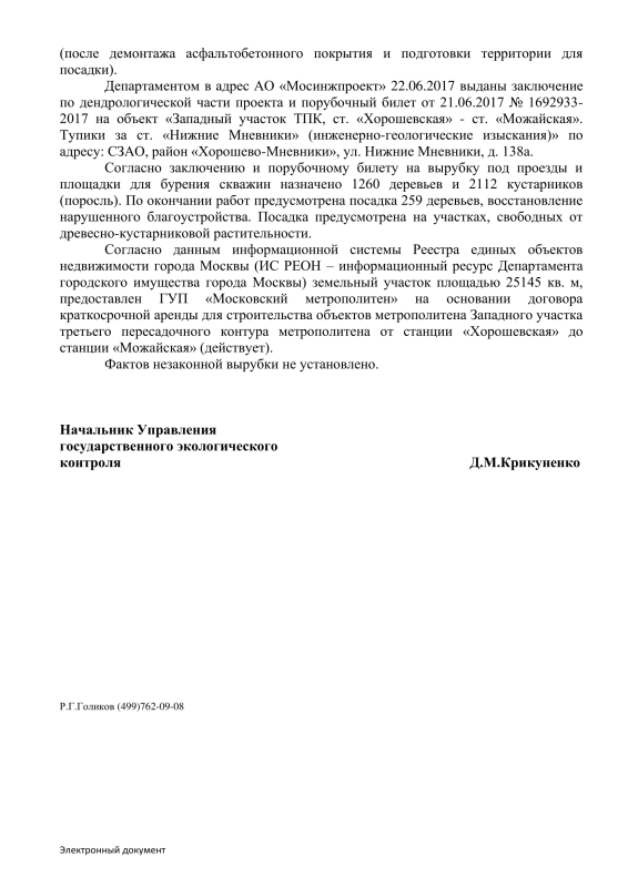 Отдельная тема – незаконность строительства на этом участке в принципе. Пока он входит в ООПТ, на нем строить просто нельзя. Процесс вывода запущен, но еще далек от завершения – пока проведены общественные слушания только в одном из четырех затрагиваемых районов, в Крылатском, да и там их результаты уже обжалуются в суде. Получается, что все эти слушания, экологические изыскания и прочее – фикция. Решил Собянин, что будет стройка в парковой зоне, значит будет! Либо парк уничтожат свалками, либо даже не будут заморачиваться на свалки, а просто спилят и раскопают всё нахрен.